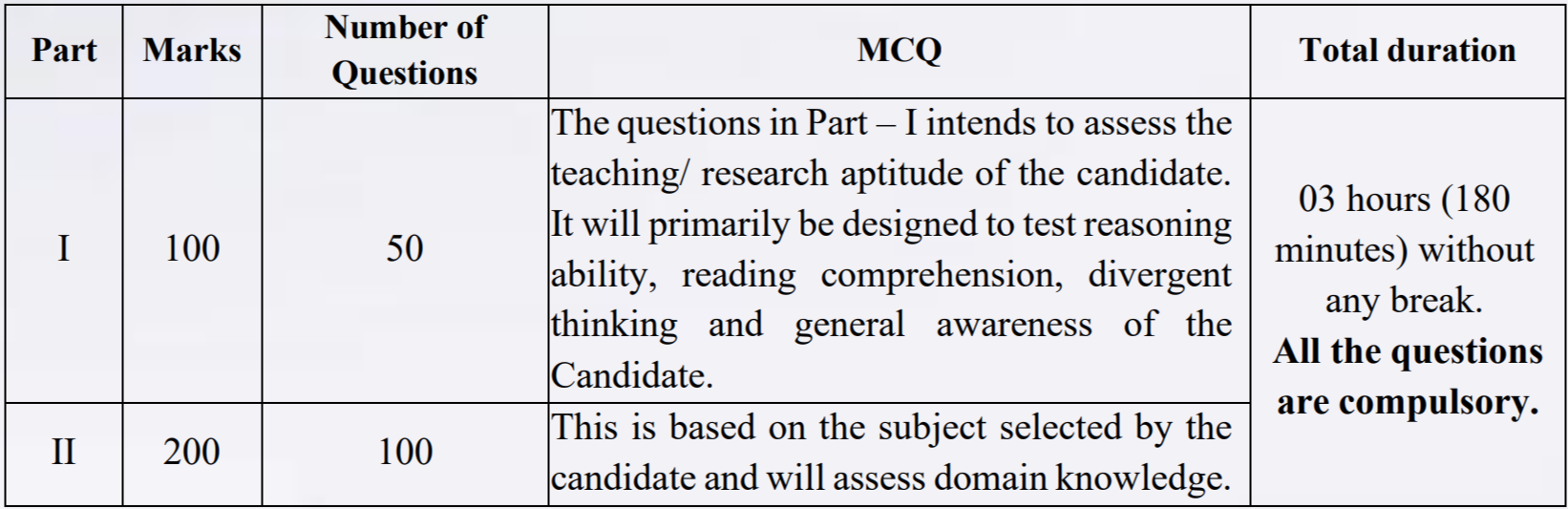 | नकारात्मक अंकन : नहीं परीक्षा मोड : ऑनलाइन मोड (सीबीटी) | ||||||||||