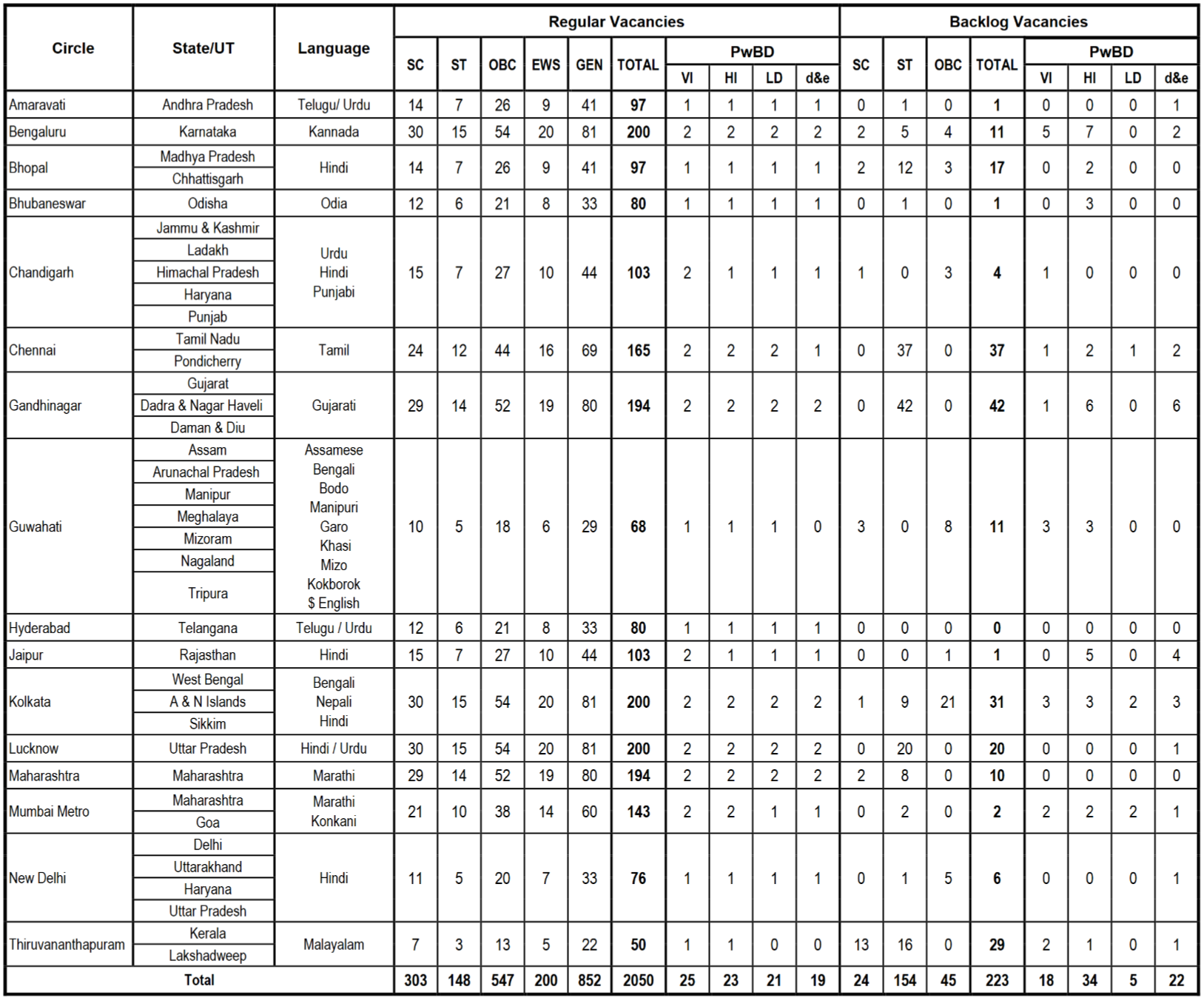 सर्किलवार रिक्तियां | |||||||||||